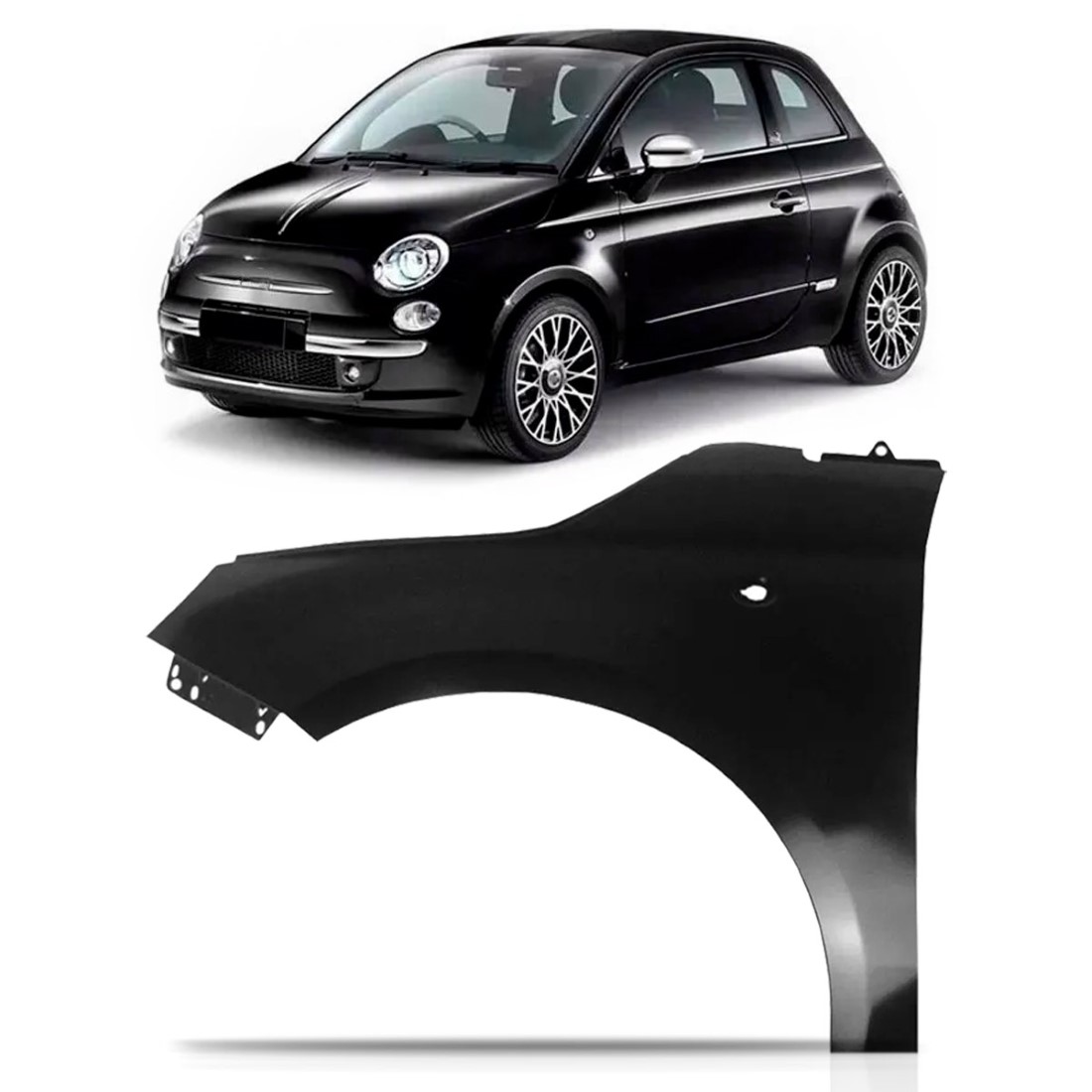 Paralama Fiat 500 2007 2008 2009 2010 2011 Com A Cor Preta Lado Esquerdo