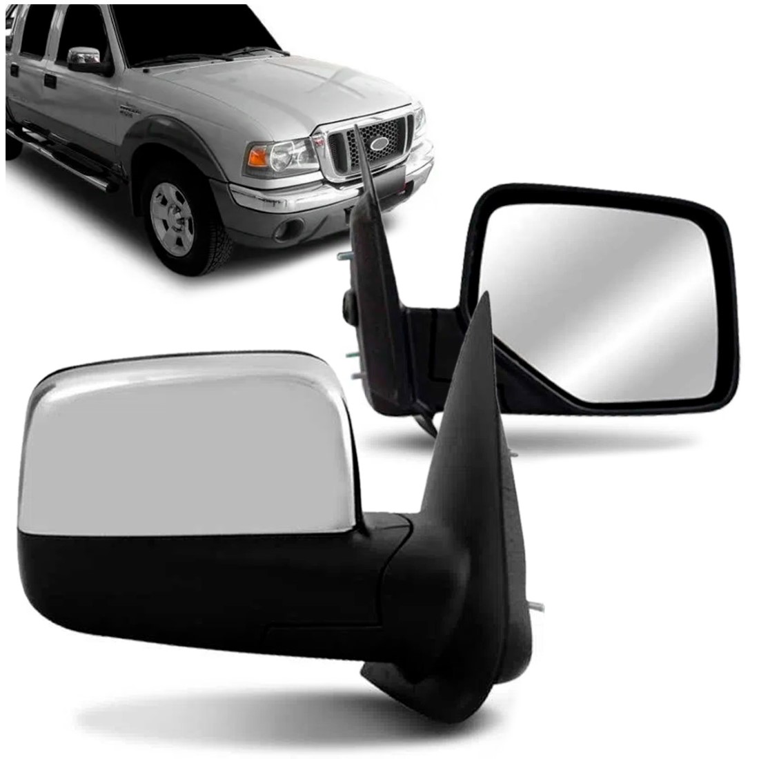 Retrovisor Ranger 2005 A 2009 Eletrico Preto Capa Cromada Lado Direito
