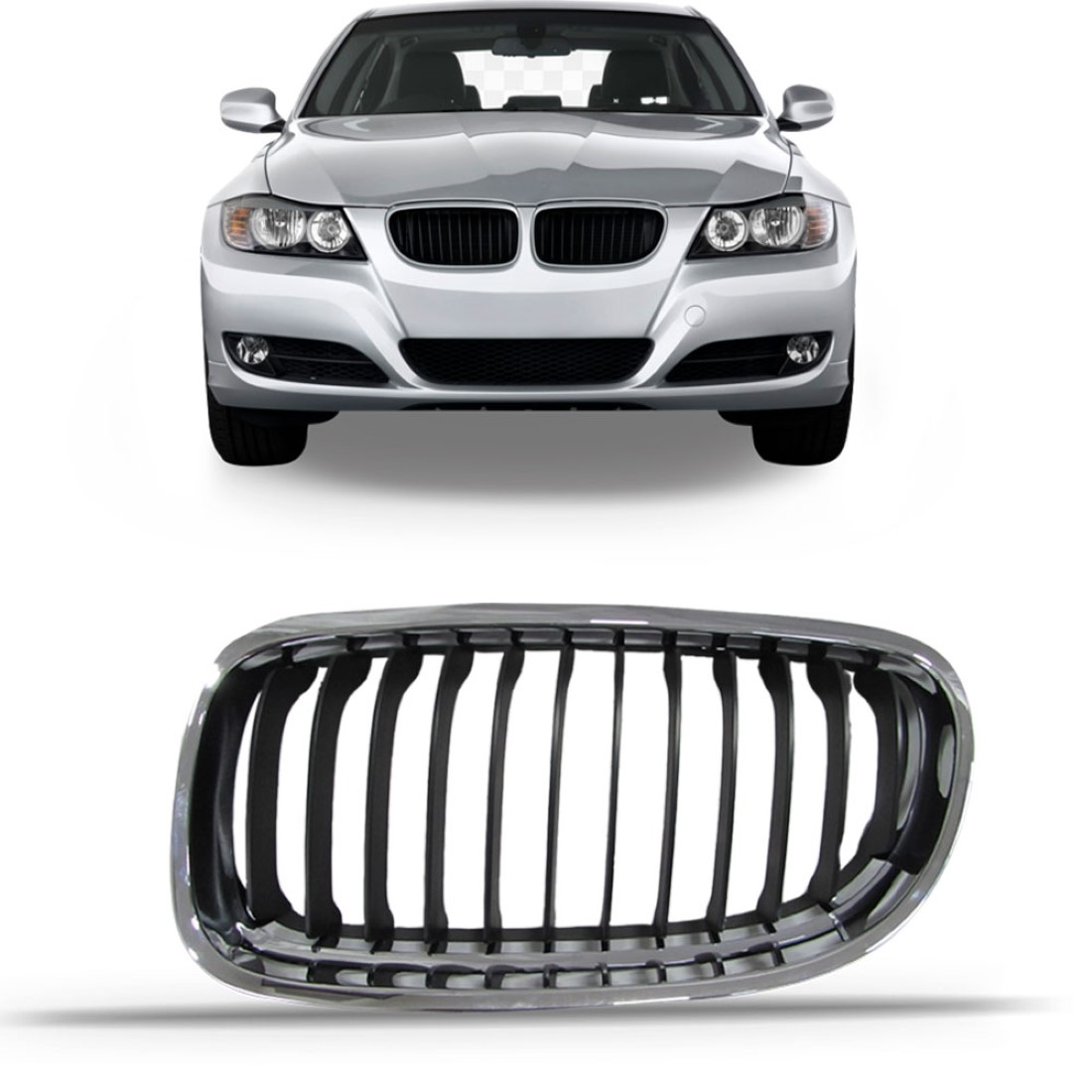 Grade Central para Bmw 320 2009 2010 2011 2012 Cromada Com Friso