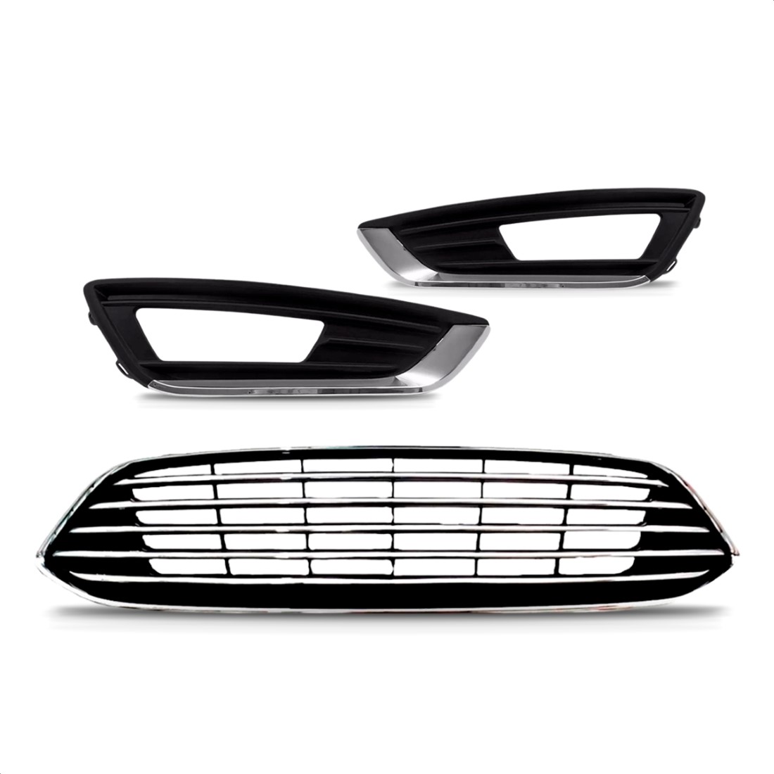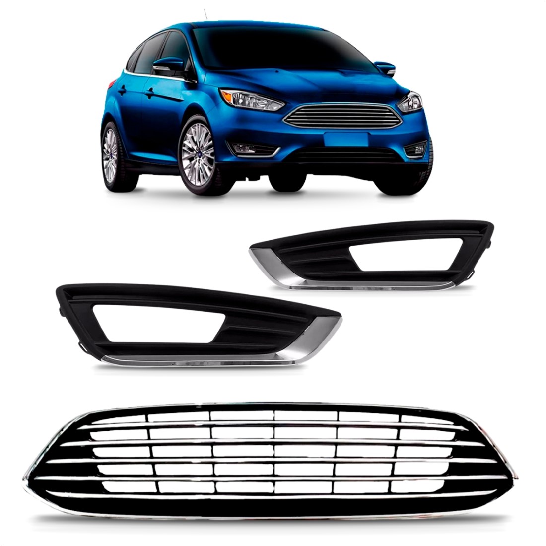 Kit Grade Focus 2016 a 2019 Friso Cromado Superior e Laterais
