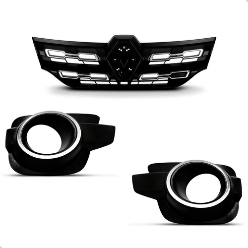 Tela Frontal Kwid 2017 A 2022 C/ Frisos E Moldura Cromada Preto