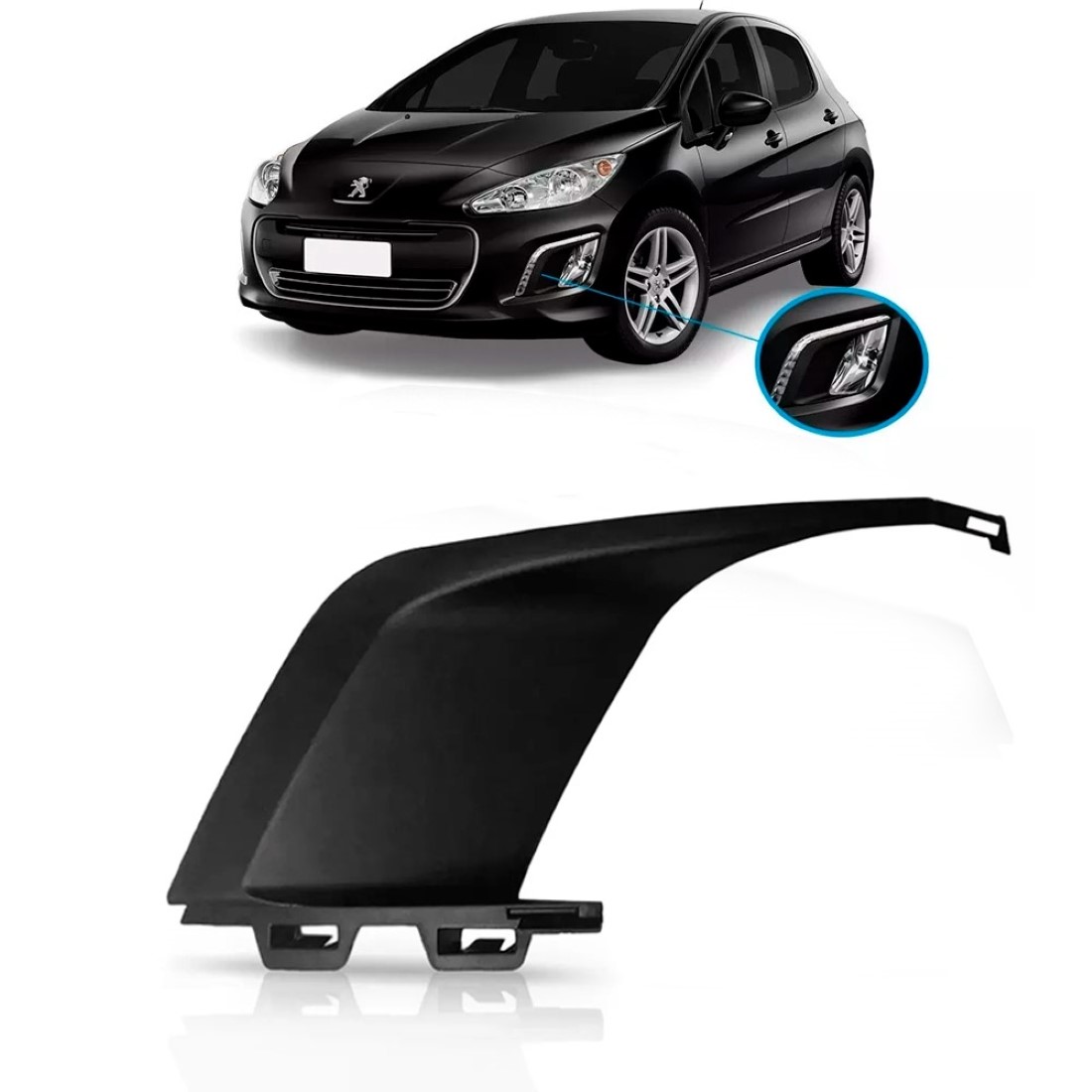 A TELA MOLDURA MILHA PEUGEOT 308 ANO 2012 2013 2014 é feita em plástico de alta resistência. Garante um acabamento perfeito do parachoque e proteção ao farol de milha.